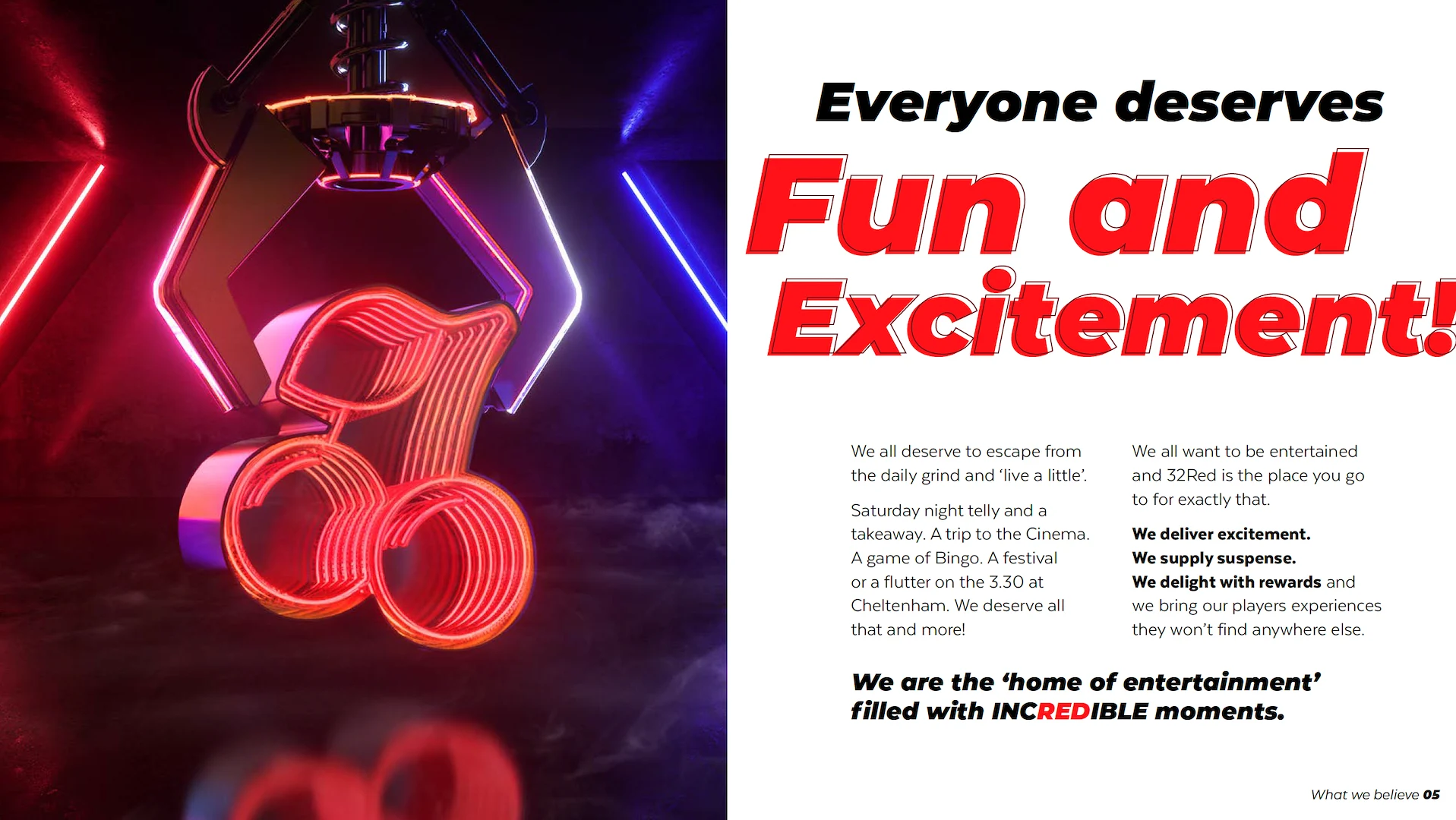 Bold, dynamic aesthetic: Positioned 32Red as a trusted, professional, and premium brand that stands out from competitors.