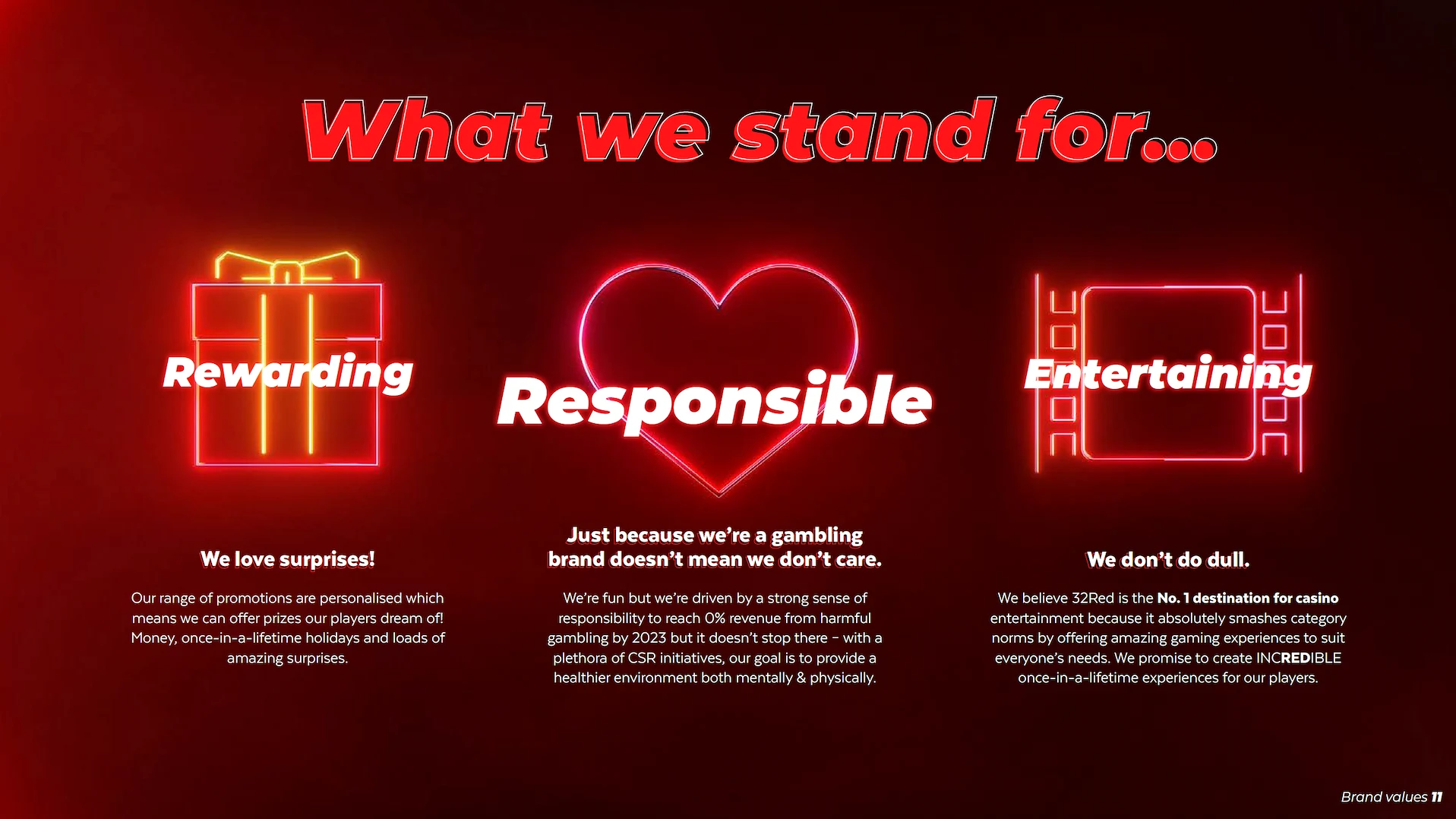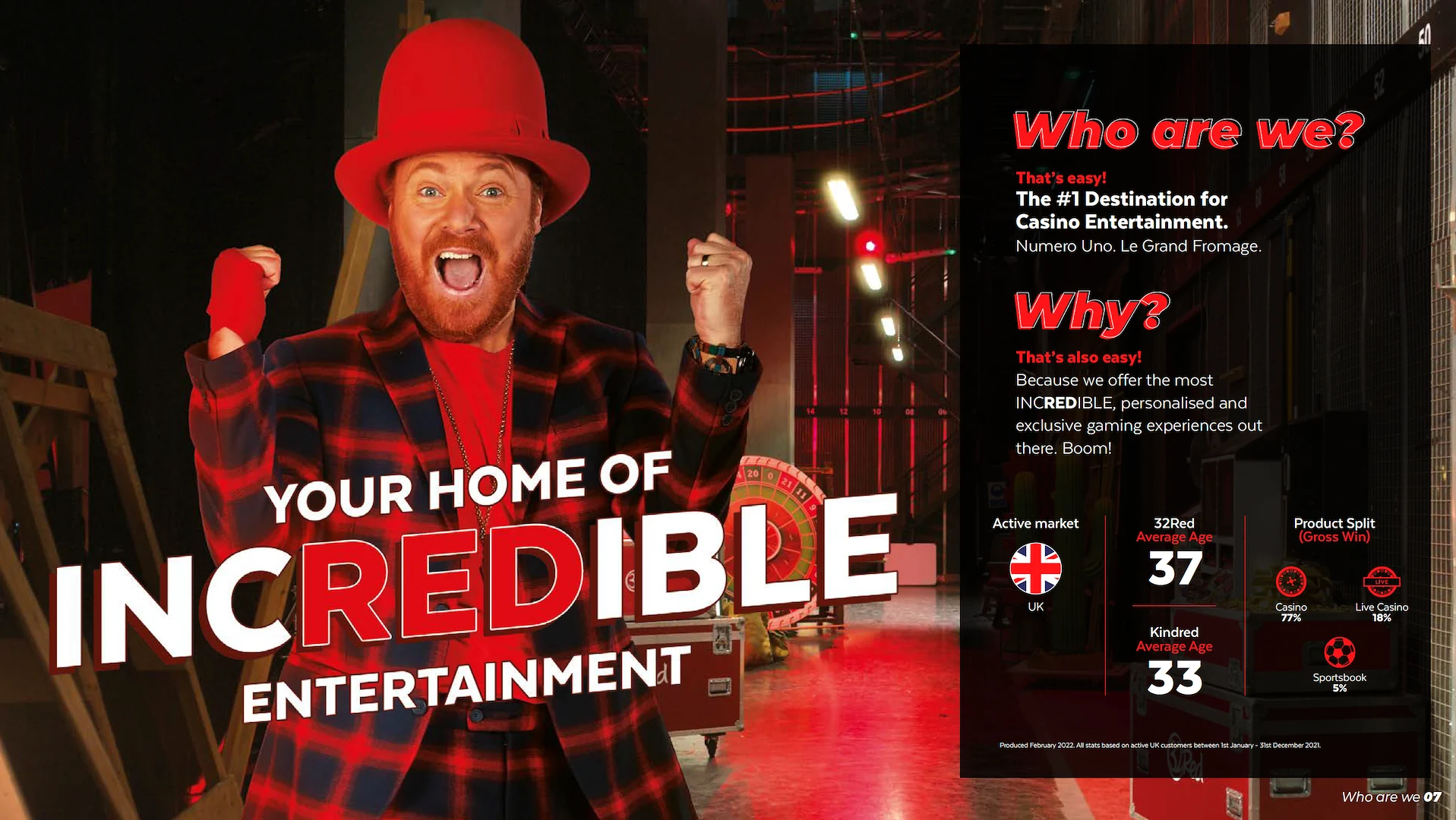 New brand positioning: Repositioned 32Red as “The Home of Entertainment”, shifting perception from ‘just another casino brand’ to ‘an entertainment brand with a great casino experience.’