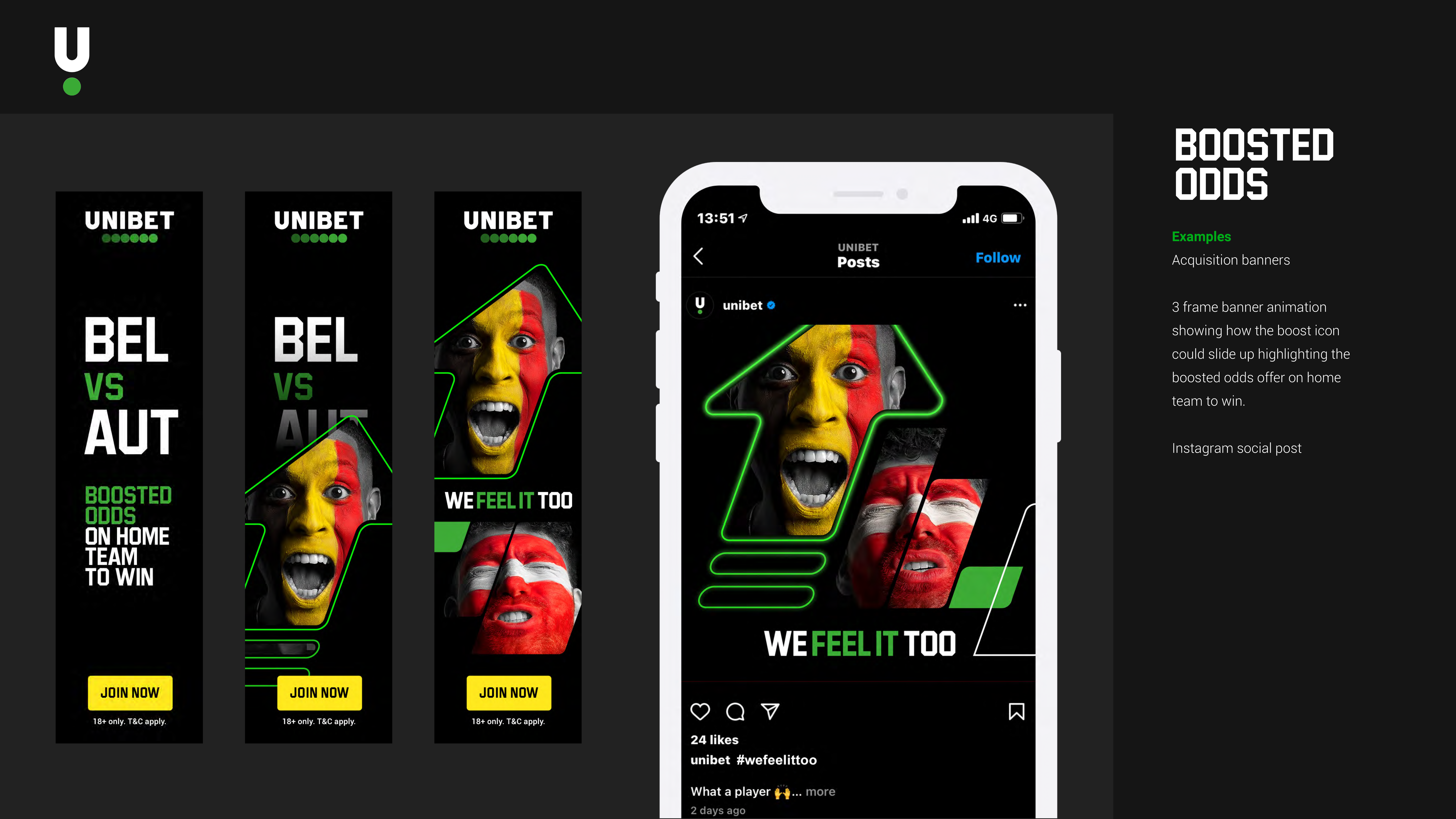 Building on Unibet’s "By Players, For Players" positioning, we created "We Feel It Too"—a campaign inspired by authentic moments that real players instantly recognise.